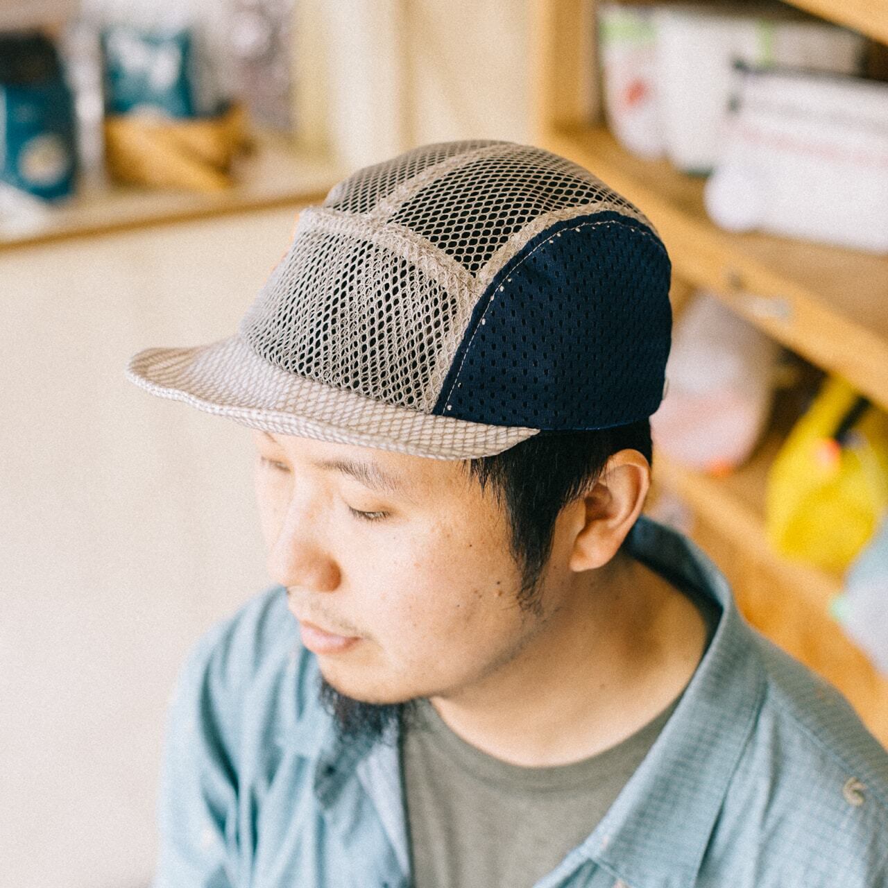 ハロコモディティより、夏のハイキングやトレランに。爽やかでクレイジーなメッシュキャップです。