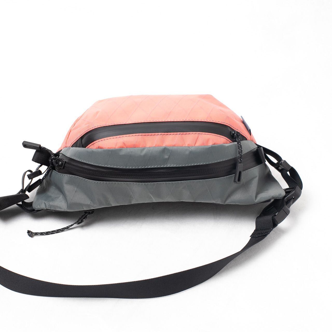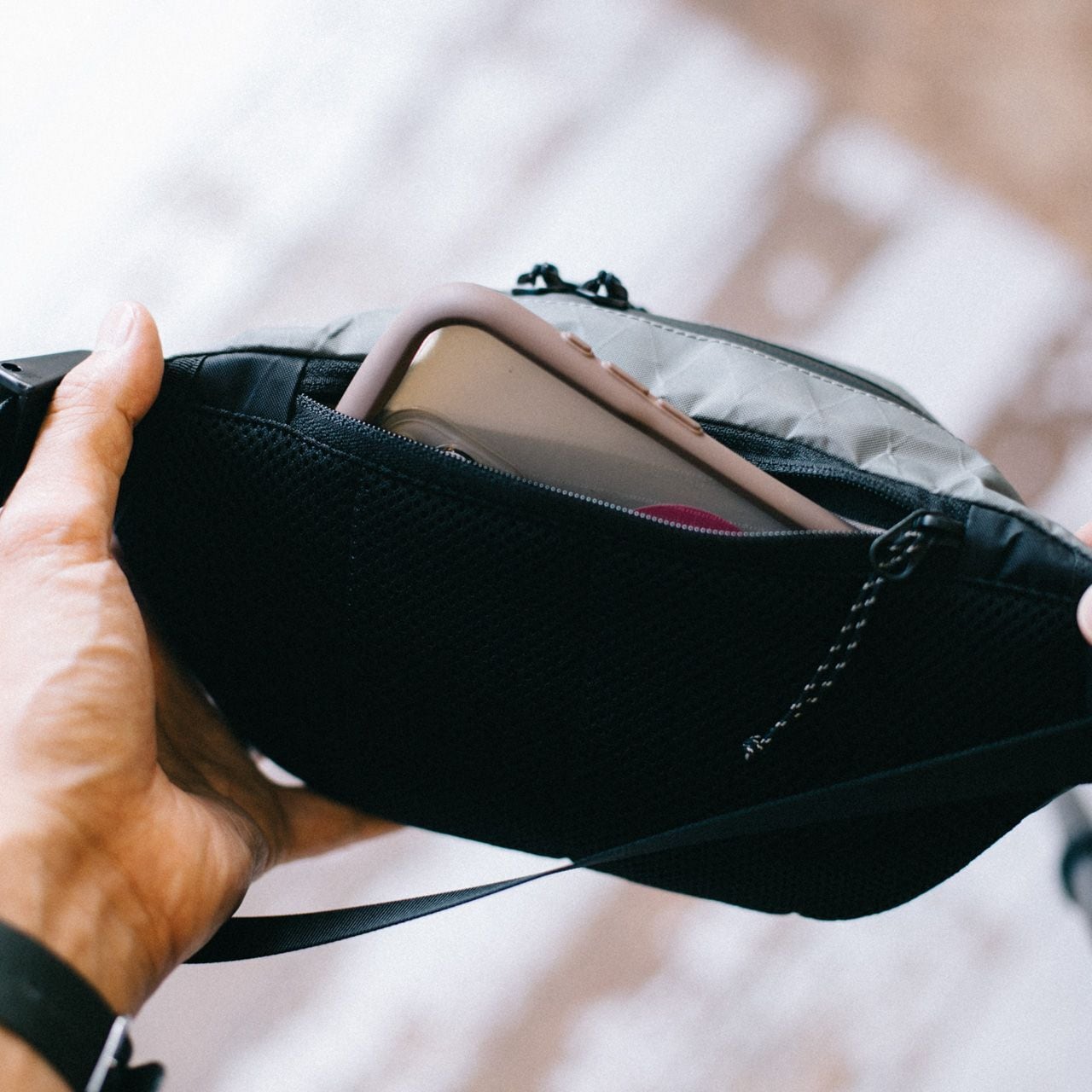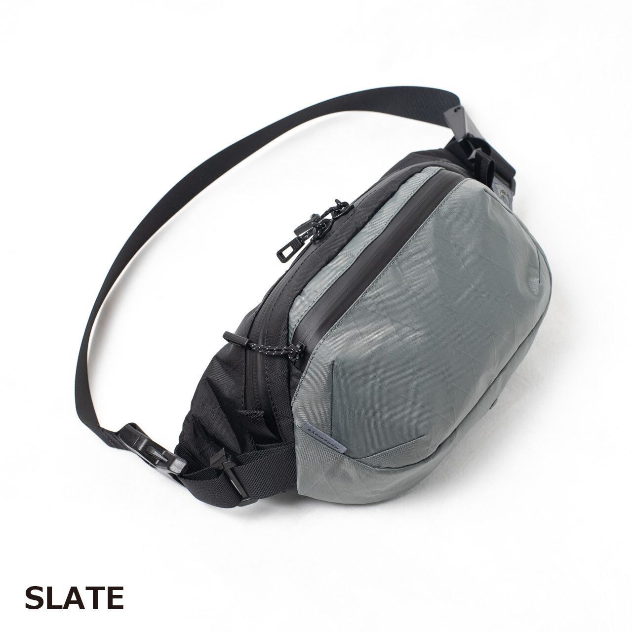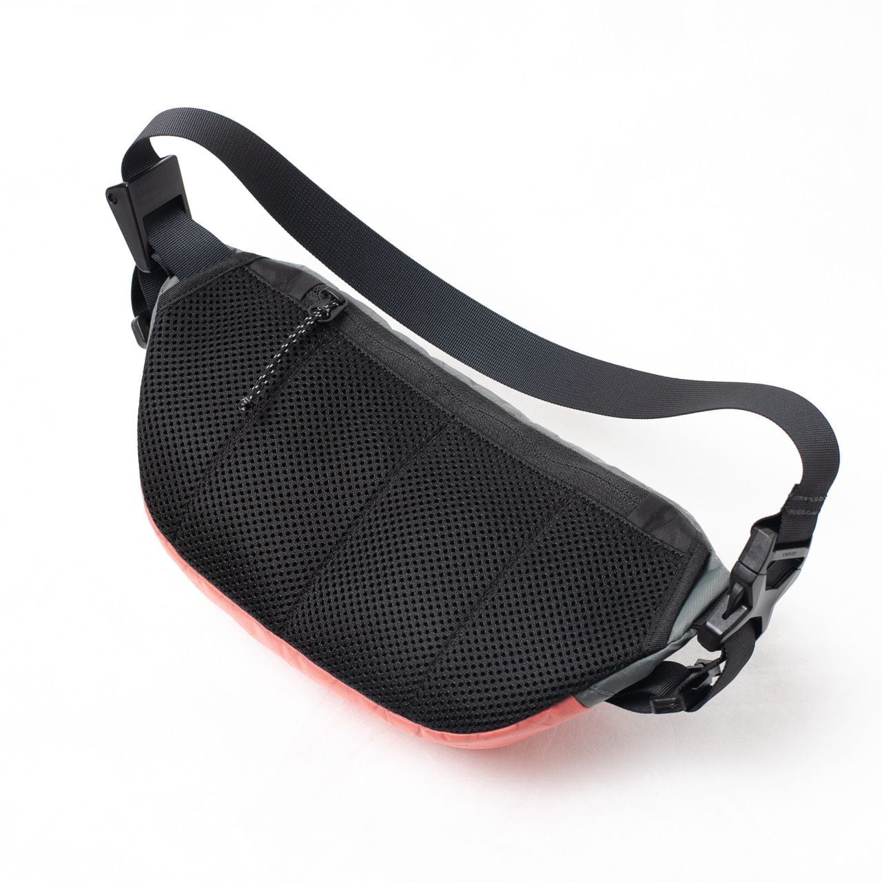 山行から日常まで、貴重品と必要最小限を快適に携行できるウエストポーチです。湾曲とテーパーを活かしたフィット設計で歩行時の揺れを低減し、前作「Middle Bag」の安全性へのこだわりを受け継ぎました。余ったベルトは背面の隠しポケットへ収められ、見た目も動きもスマートに。