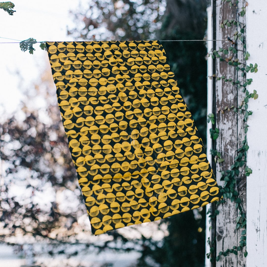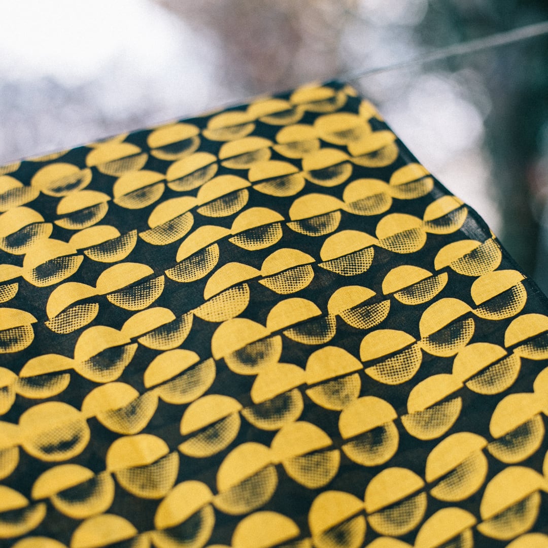 糸島の海辺のアトリエで生まれるmakumoのテキスタイル。ハイキングや登山で使いやすいように、よく乾くハンカチの生地で手ぬぐいを作っていただきました。