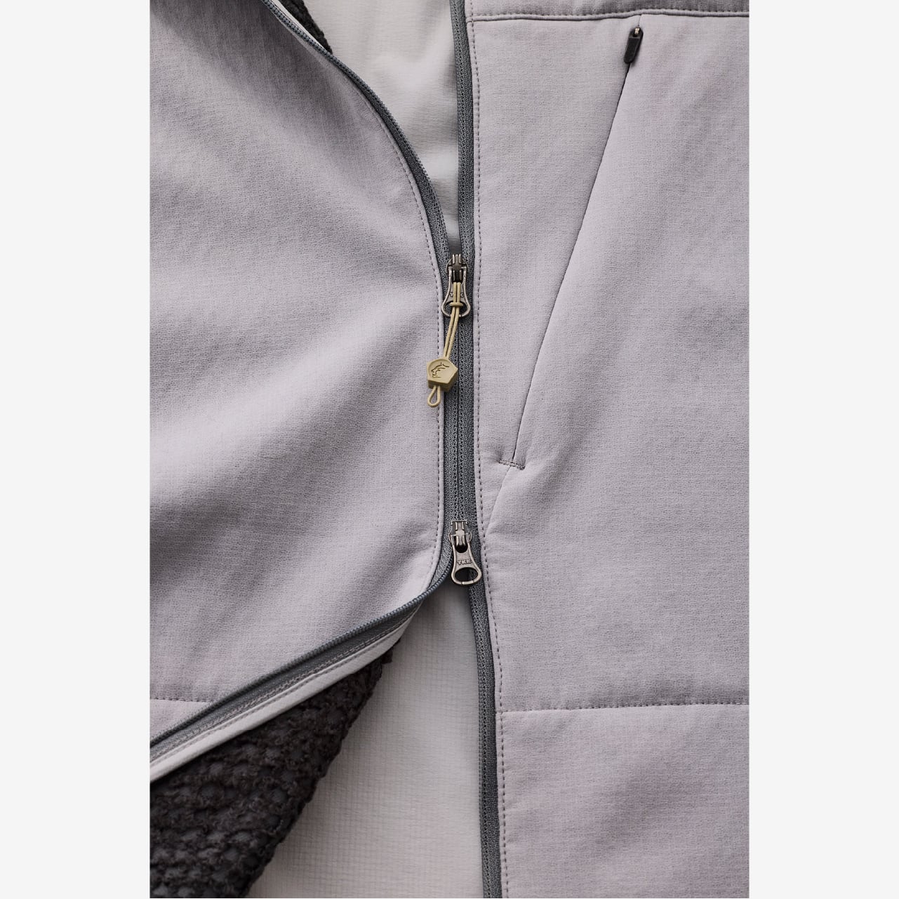 素材は「Stretch Octa Bonding」を採用。帝人が開発した8本の放射状突起を持つ中空糸「Octa」を、ストレッチ性のある表生地に直接ボンディングで一体化させた素材です。従来の縫い付け方式と比べ、表生地とOctaの間の隙間がなくなることで、汗の水分を素早く拡散・乾燥させ、理想的な動的保温を実現しました。