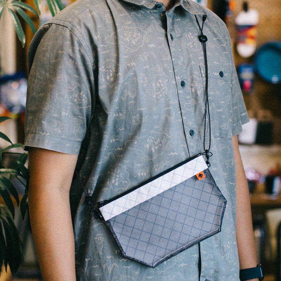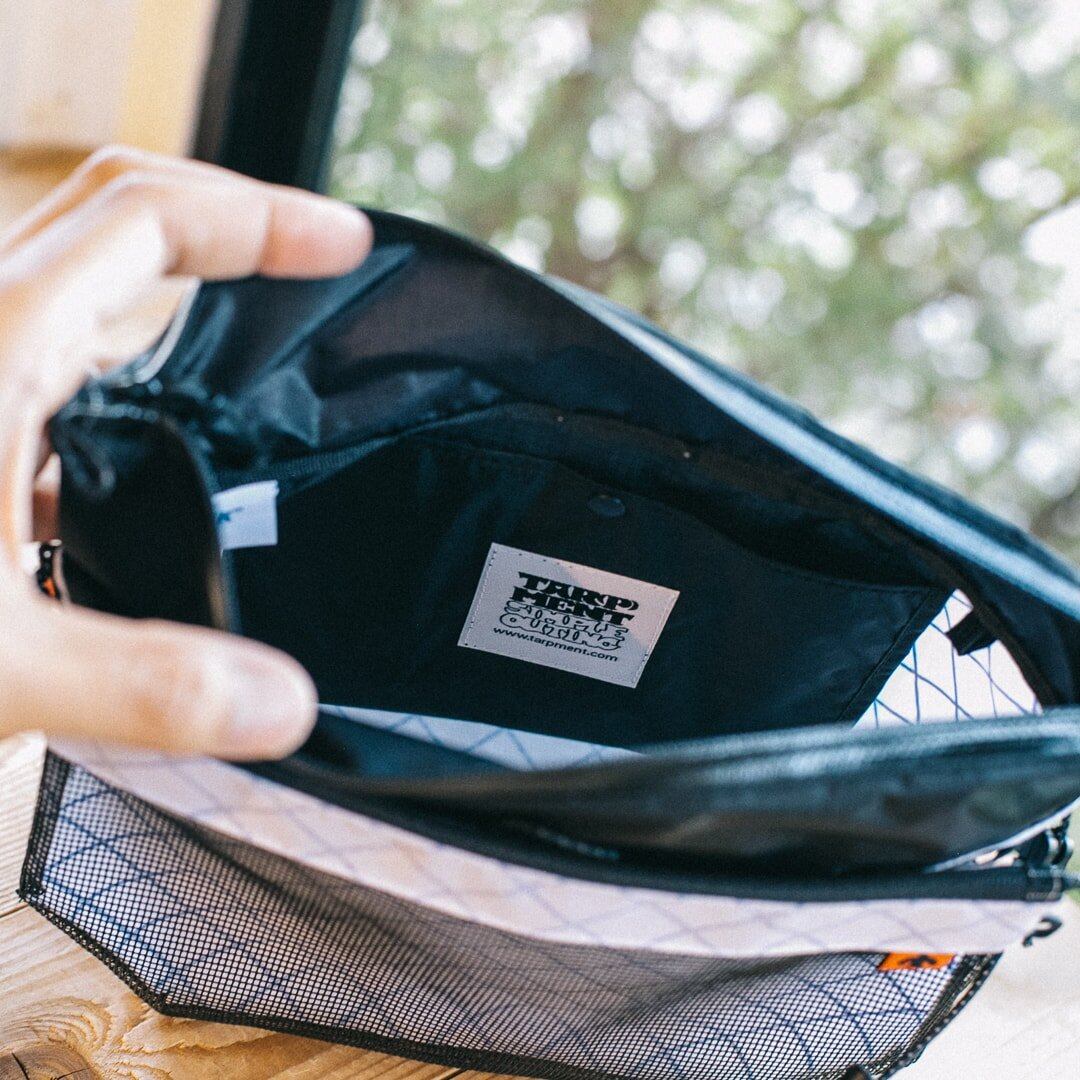 香港のTAR(P)MENTによる、フロントの小さなメッシュポケットが取り外しできるユニークなデザインのサコッシュです。