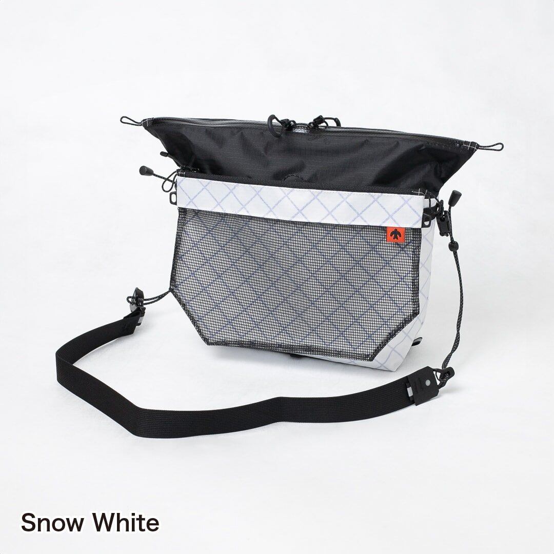 中が見えるPVCメッシュのポケットは、バッグの中で迷子になりがちな小物を入れておくのに便利。ポケット用のショルダーストラップも付属しており、それ単体で小さなサコッシュとして使用することができます。