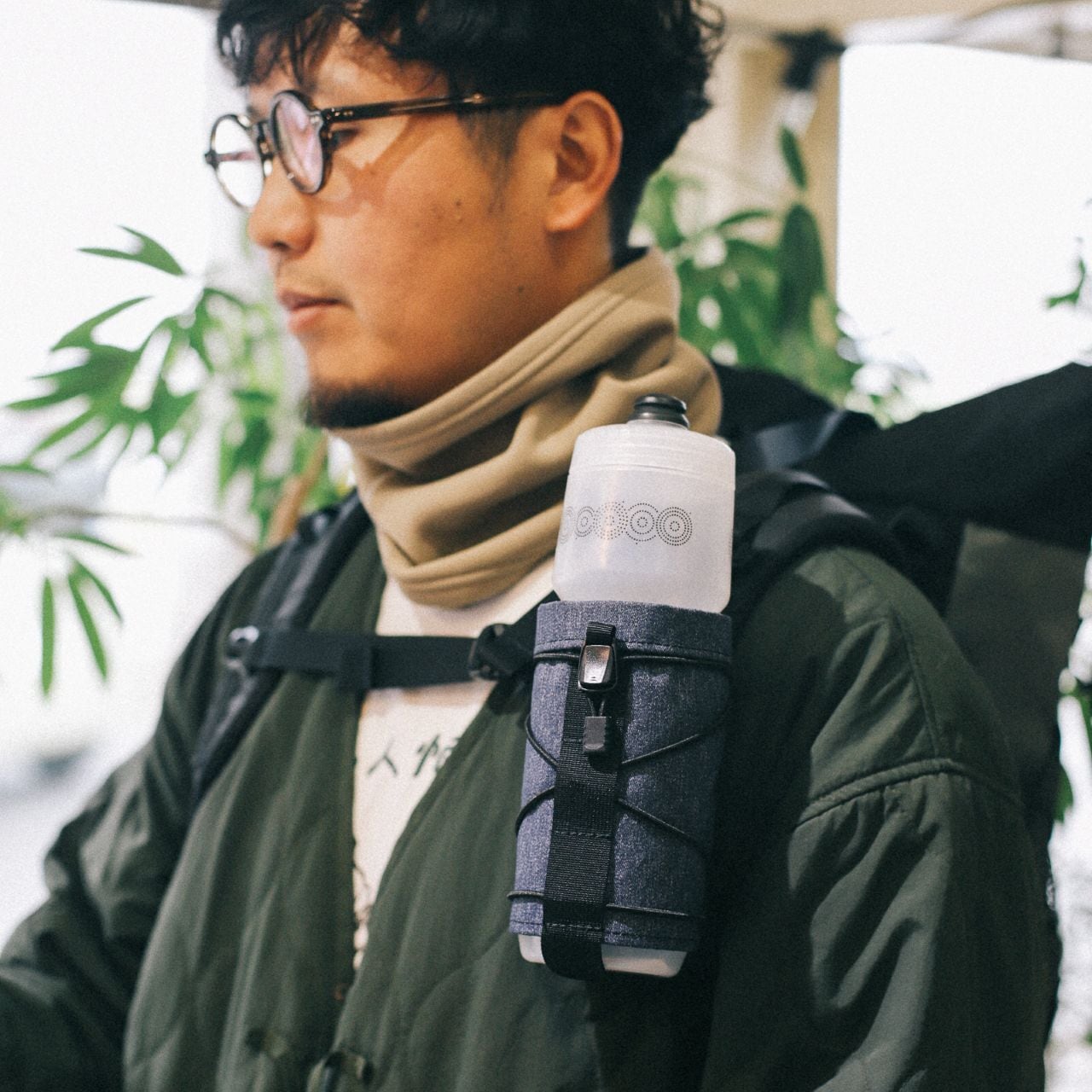 軽くてシンプルなボトルホルダーです。ショルダーハーネスには何かしらループがある場合が多いので、いろいろなザックに取り付けできると思います。愛用しているHanchorのPUMICEにも取り付けできました。